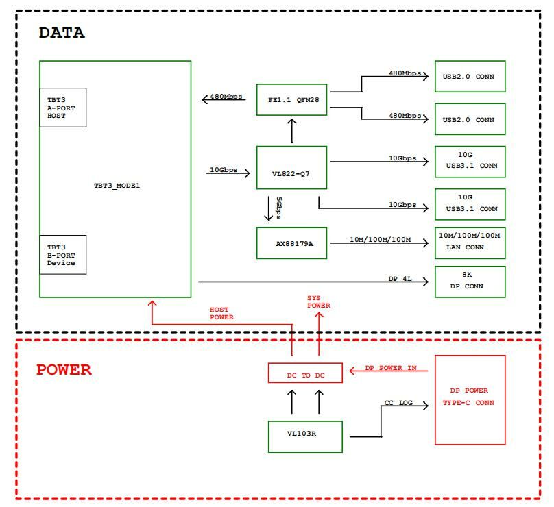 本方案基于Intel® 8000 series – JHL8440 或Intel® 7000 serie – JHL7440 Thunderbolt Module 开发。原理大致是USB4和intel Thunderbolt协议相同,USB4兼容Thunderbolt3,Thunderbolt4向下兼容Thunderbolt3以及USB4。