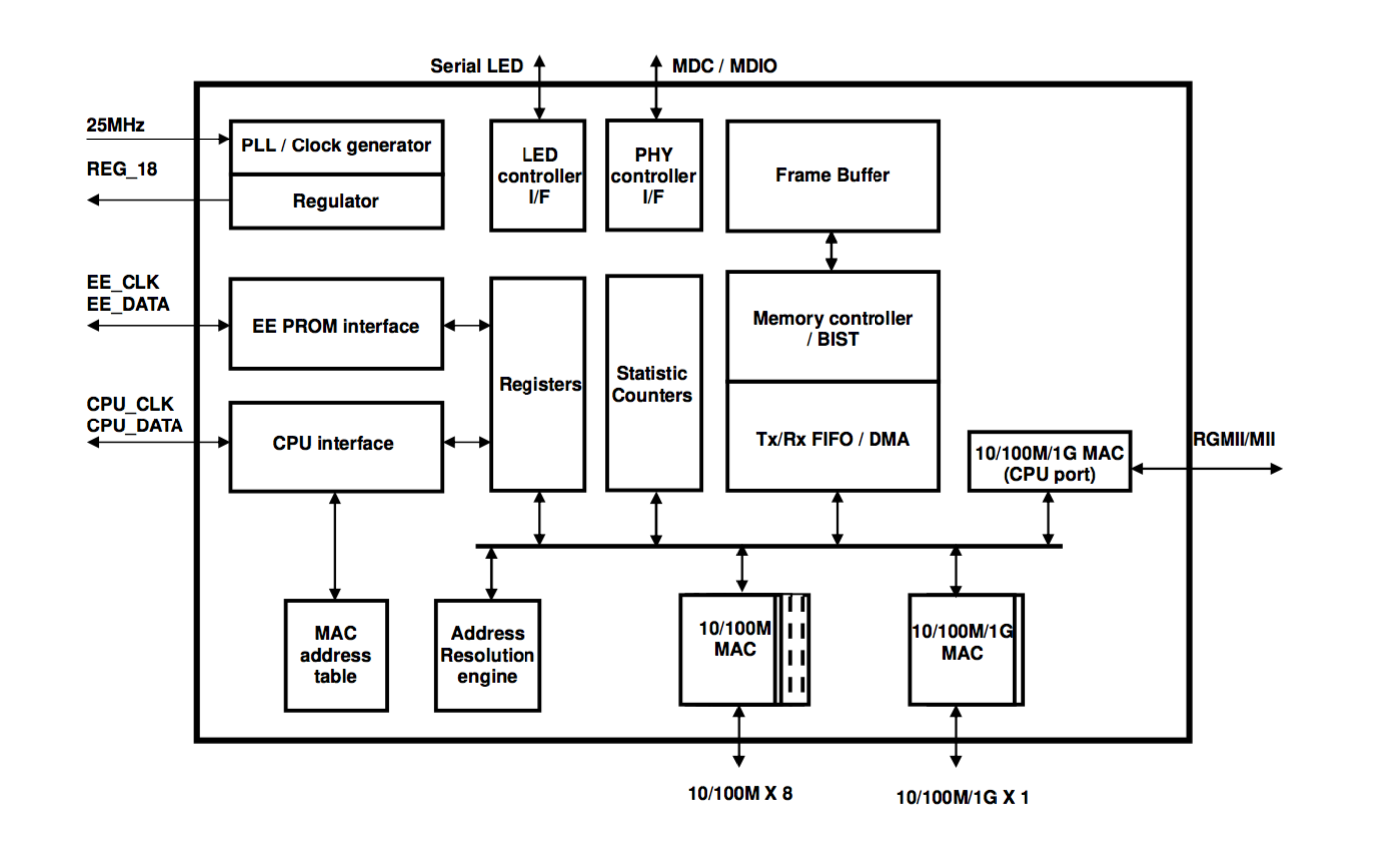 - RGMII interface for 1 10/100/1000Mb PHYs