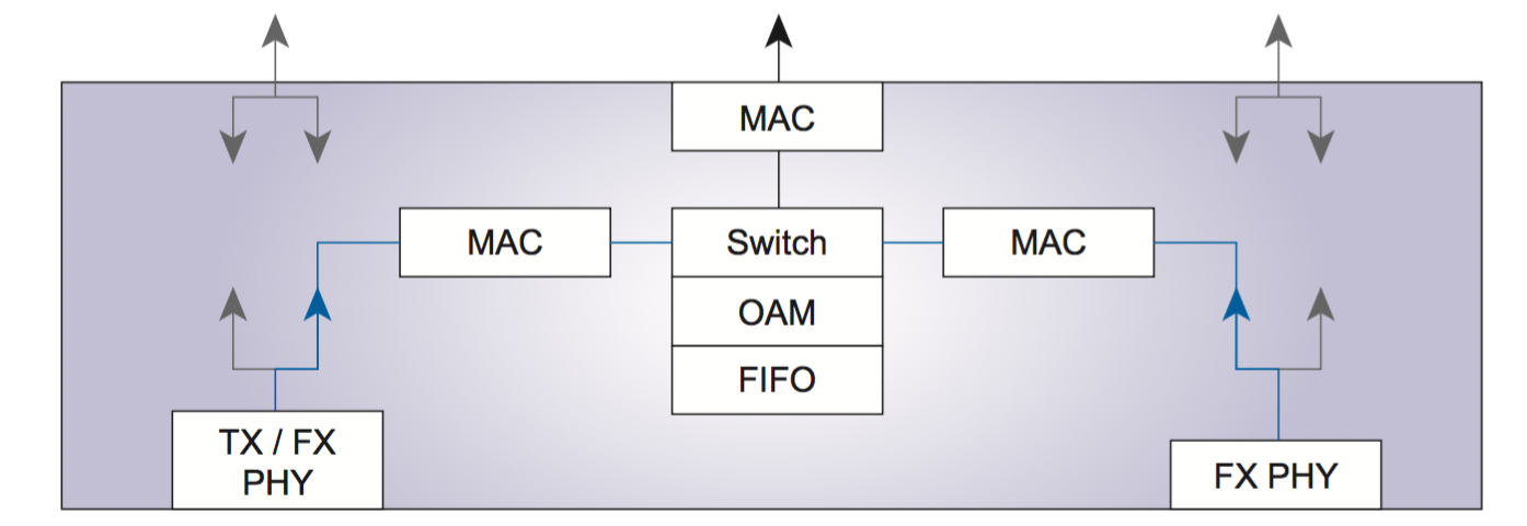 - Supports modified cut-through frame forwarding for low latency