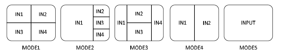 MODE5: This is the full screen mode, press IN1 ~ IN4 button will select the corresponding channel
