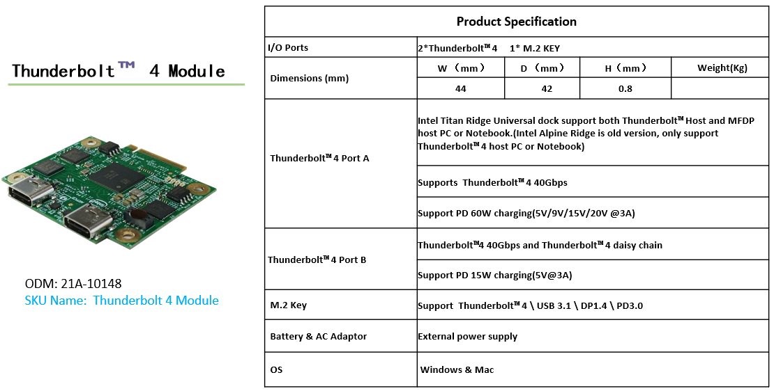 Thunderbolt 4Module 规格: